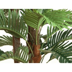 Whether for your residential or business area, the 3-trunk Kentia palm from Europalms is ideal as an easy-care decorative element. Your trunks are wrapped with real palm fibre material, which additionally gives the artificial palm a very natural appearance. They show off particularly well, since the palm fronds were set only in the upper range. The palm leaves are made of high-quality textile material. We recommend to treat these optionally in regular intervals with a UV-protection spray, so that you can enjoy your palm for a long time.The plant is available in different sizes.Included in the delivery is a basic gardener's pot, which gives the plant a stable stand when placed in a planter. The leaves only need to be bent slightly into shape.