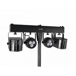 DMX light effect bar with 2 rotating LED derbies and 2 LED spots