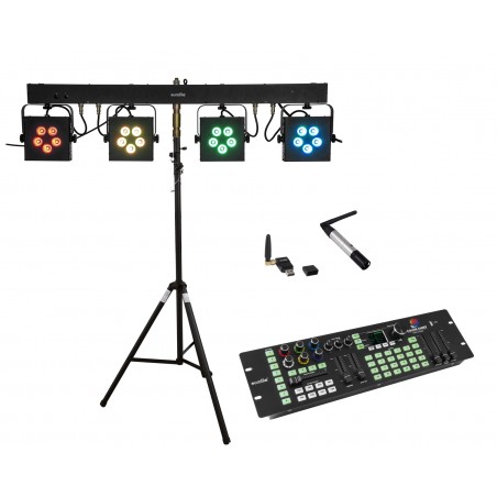 Bar with 4 powerful RGB/WW spots, QuickDMX support, IR remote control and bag