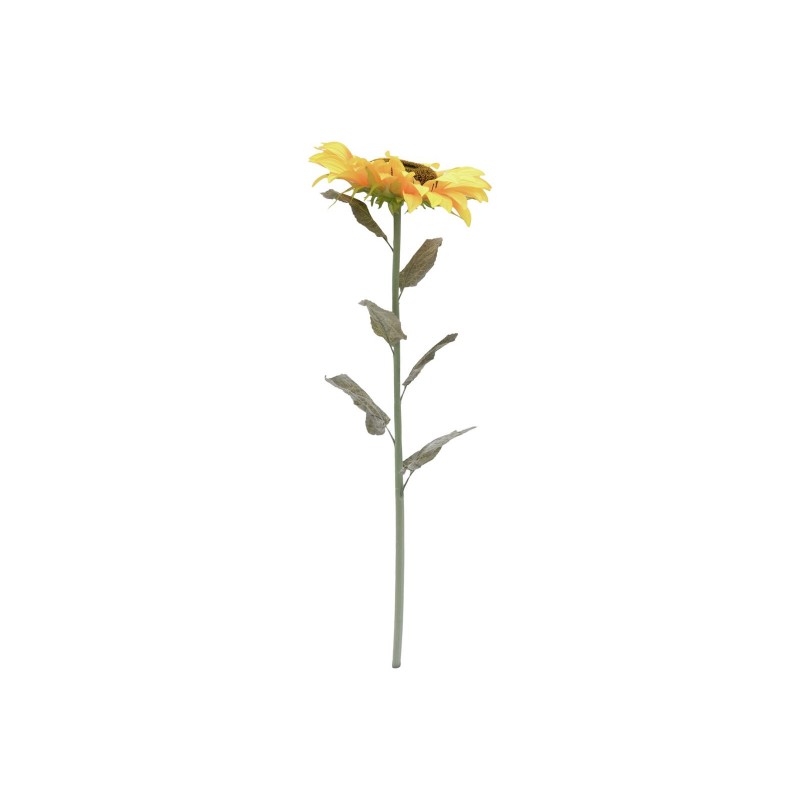 With the artificial sunflower of Europalms you get a piece of summer and sun in your home. Whether lavishly arranged in a large vase, integrated in attractive summer and autumn decorations or as table and counter decoration - discover your decorative talent!The artificial flower is made of PE and textile material and has a total height of approx. 70 cm.According to its natural model, the inflorescence consists of a green flower basket with bright yellow ray florets and inner brown tubular flowers. Alternating foliage leaves arranged on the stem, with veined structure and a slight brown coloring on the serrated edge, round off the natural appearance.