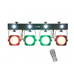 Bar with 4 RGB spots, 4 white strobe LEDs and QuickDMX USB port