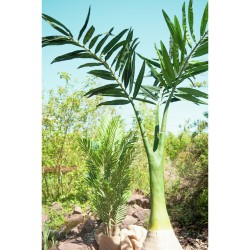 The Phoenix Palm from Europalms is the ideal companion for trade fairs or events where there is often not much time for elaborate decoration.The tuber trunk of this phoenix palm is made of high-quality plastic, reinforced with glass fibre, and also serves as a stand. A cumbersome potting into a cachepot is therefore no longer necessary and the artificial tree is quickly ready for use.The fronds have a stable shaft made of metal and are simply plugged in.From the bottom to the top of the leaf, the plant has a total height of approx. 240 cm.If a flame retardant treatment according to DIN 4102/B1 is required, thetextile leaves of the fronds can be treated with an appropriate fire protection spray.