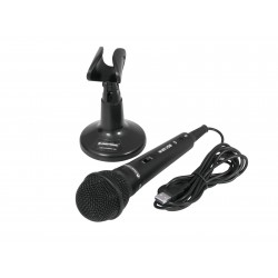 Dynamic USB microphone with standThe OMNITRONIC M-22 USB microphone is ideal for podcasters, musicians, journalists and all those who need audio files for websites or multimedia presentations. Connect the M-22 directly to any computer with a USB input for digital recording and get started right away.The USB microphone comes with a cardioid pickup pattern for excellent feedback suppression and a wide, balanced frequency response for a natural sound. No driver installation is necessary, just plug & play and the microphone is automatically detected.A cable with USB connection and a microphone holder are also included.