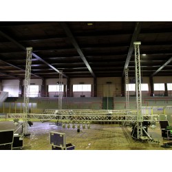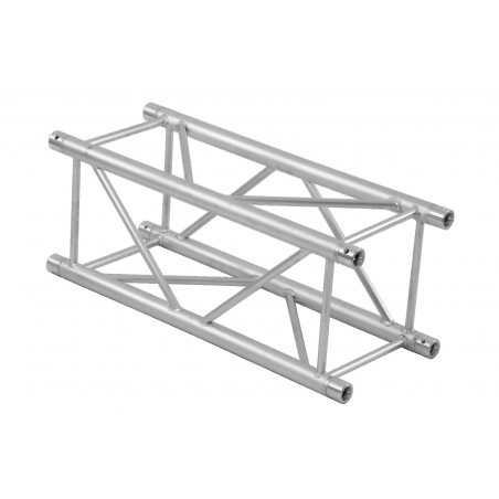 QUADLOCK TQ390 4-point truss systemQUADLOCK TQ390 is a 4-point truss system made of aluminum. The individual elements are connected via four cones, pivots and pins.The advantage of the conical connection system is that the cones completely fit into the main chords so that highest load capacity is guaranteed. The Quick-Lock system enables fast, efficient and highly aesthetic assembly when the truss constructions are frequently assembled and dismantled.The four main chords are made of 50 mm aluminum tube with 2 mm wall thickness and offer a good relation between strength and weight. The braces have a diameter of 20 mm with 2 mm wall thickness and provide higher strength and load capacity.With 390 mm outer dimensions, QUADLOCK TQ390 is a stable truss system for higher loads and extended durability. This system is mainly designed for intense use in stage installations, fair installations, event installations but also for permanent installations in discotheques and theatres.Due to its higher outer dimensions and the enforced braces, larger structures for tour stages, large discotheques etc. can be realized.The production of this truss system is TUV-monitored. The load table as calculation base can be downloaded from the Internet before buying the product!Please note: this truss system must never be combined with other systems!