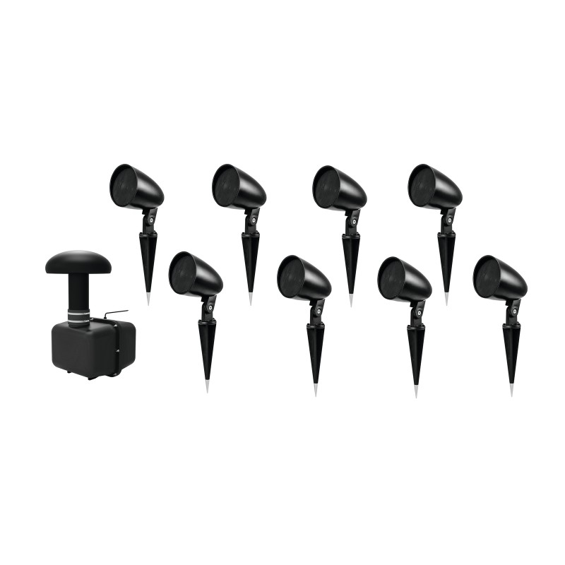 2 weather-proof 2.5" garden speakers with ground stake, 70 W RMS/ 8 ohms