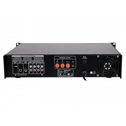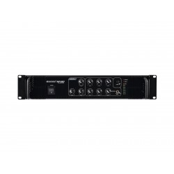 High reliability with a maximum of flexibility The Omnitronic MP-180 ELA mixing amplifier is your reliable partner when working with ELA sound systems. Thanks to its 19" format, it is ideally suited for both mobile and fixed installations. Outputs for ELA loudspeakers with 70 V and 100 V audio transformers or 4-16 ohms loudspeakers leave nothing to be desired. In addition, you can also connect a device with line level (e.g. mixing console) to the line output. With 6 mixable inputs you always stay flexible. Connect up to 3 microphones and 3 line level devices. Announcements are a priorityThe microphone input 3 on the front panel offers an adjustable priority circuit. It enables you to make important announcements with automatic, continuously adjustable level reduction of all signals. Use the gong to additionally point out your announcement. Protective features A fan protects the interior of your MP-180 from overheating. In addition to a switch-on delay, it has overvoltage and short-circuit protection circuits. In these cases, your speakers are electrically isolated from the amplifier. The FAULT LED lights up then and both the MP-180 and your speakers are protected against damage.