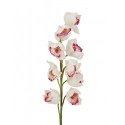 The detailed artificial orchid branch of Europalms fascinates by its simple timeless elegance: Whether in a large vase, as table decoration or as part of an arrangement. Set noble floral accents in your home, office or hospitality with just a few simple steps, which score with uncomplicated care.The 90 cm long flower stem has the lush flowers typical for the plant genus Cymbidium. The branches are available with flowers in various colors and have a great haptic feel due to their soft-touch quality.