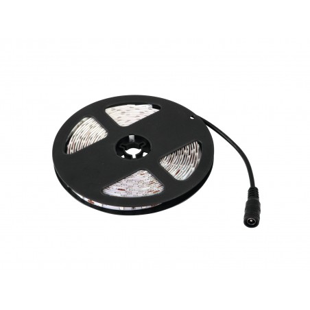 With its numerous LED strips, Eurolite offers light on tape for technical decoration or bar illumination.The flexible LED strips have a length of 5 meters. Unichrome versions - red, blue, green, yellow, cool white, warm white - are complimented by two RGB versions. The single colors can be ordered either with a wide span (150 LEDs) or with a short span (300 LEDs) between the LEDs. The RGB versions are available in 12 V or 24 operation - LED quantities are 150 or 240. An optional LED controller controls the brightness and the speed of the RGB LEDs or provides automatic run of the built-in color programs.Supplied on a plastic reel, the LED stripes feature a self adhesive rear side for simple installation. Color and form can be used as desired as the strips are very flexible and adaptable to really every venue.