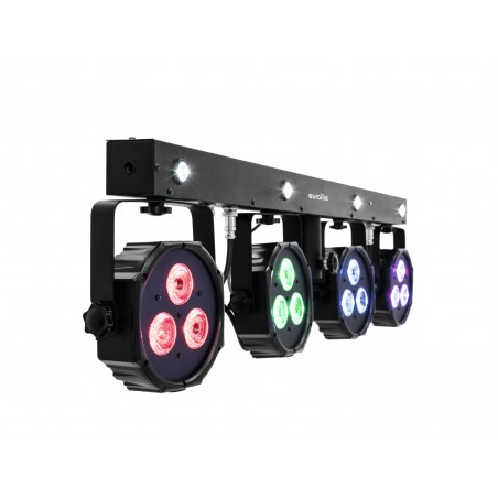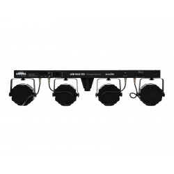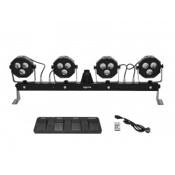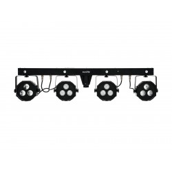Bar with 4 RGB spots, cold white + UV strobe LEDs, foot switch and bag