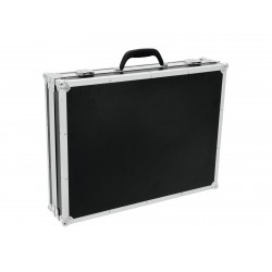 Flightcase for one laptop with 15"With the ROADINGER Laptop Case your 15" laptop is always well protected. You can transport one laptop in the main compartment. The two additional slots are suitable for accessories such as external hard drives or power supplies and cables.The high-quality finish is highlighted by the multi-layered glued wood and the robust carrying handle.The necessary stability is supplied by the aluminium profile frame and the three-legged, small steel ball corners. The two lockable snap locks additionally protect your laptop from unauthorized access.
