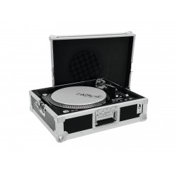 Flightcase for one turntable (up to 450 mm width)The foam padded Roadinger Flightcase offers you space for a turntable without cover up to a width of 450 mm.The high-quality finish with multi-layered glued wood and four steel-reinforced rubber feet provide for the stability of the Roadinger turntable case. In addition, the flight case has two lockable butterfly locks - so your turntable is always safely stored.The maximum load capacity is 20 kg.
