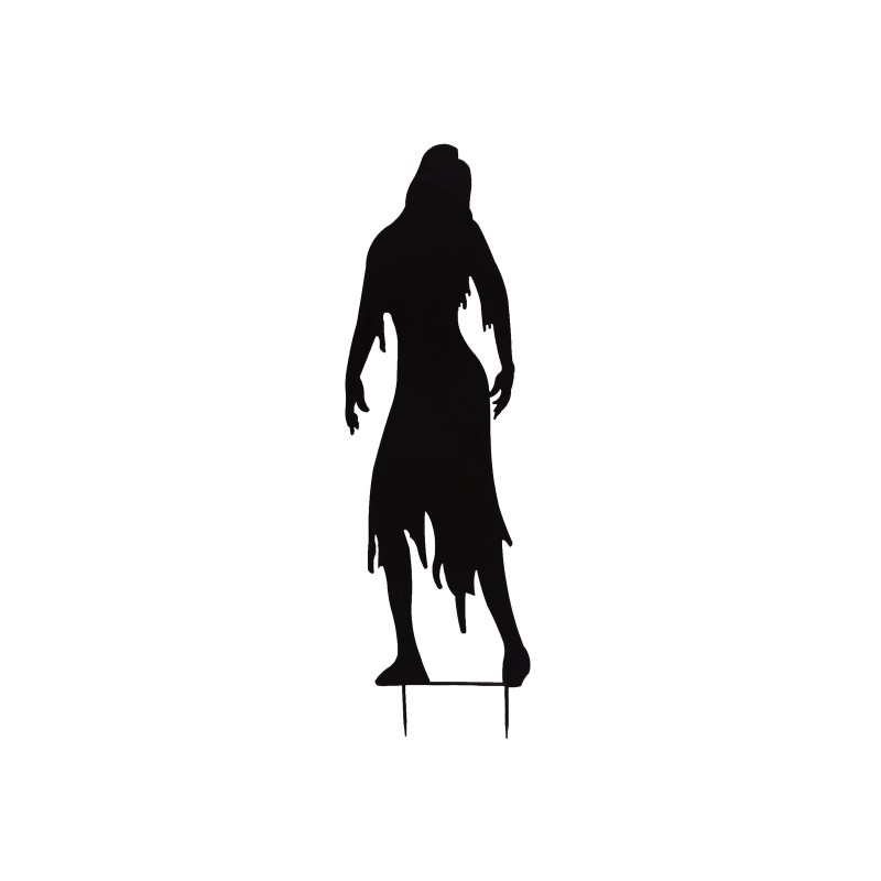 Are you planning a motto- or Halloween party and looking for a matching highlight for the appropriate scary atmosphere? With the metal silhouettes of Europalms you set accents or create a complete horror scenery that will inspire your guests.The 135 cm high silhouette represents a female zombie with shredded garments. Don't let the girlish figure fool you, the undead can attack your victims at any moment!Determine the scary factor yourself by increasing the scary effect with indirect lighting or the use of a fog machine.In the scope of supply are approx. 11 cm long earth skewers from metal contained, which can be screwed on with few handles. Thus nothing stands in the way of outdoor use in your garden or front garden.