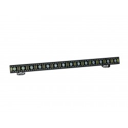 3in1-LED-Sunbar with warm white beam effects, stroboscope and ambient lightThe EUROLITE STP-14 Sunbar is equipped with three effects in one device: Beam effect, stroboscope and ambient light. It is therefore very suitable for your stage equipment, for decorative lighting, for example in shops or for use in discotheques. You can also use the LED bar in theatres or at galas: Due to pure convection cooling via cooling fins, this effect does not require a fan and is therefore particularly quiet in operation. The flicker-free STP-14 Sunbar is equipped with 14 warm-white 3-watt LEDs with a beam angle of 6.5° for narrow beams. 120 bright RGB LEDs behind the transparent cover provide appealing mood lighting and color animations, while 180 cold white LEDs provide fast, dynamic strobe effects. These lighting effects are particularly effective when you use fog.RGB color mixing is infinitely variable. The effects available are chases, dimmers and strobe effects with variable speed and via the random generator.All three LED types are divided into different segments which can be controlled individually via DMX. In addition, you can control the Sunbar STP-14 by music control via the integrated microphone with adjustable microphone sensitivity and in master/slave mode. Addressing and settings are made via the integrated control unit with four-digit LED display.The power supply of up to eight devices is possible via a P-Con mains connection.