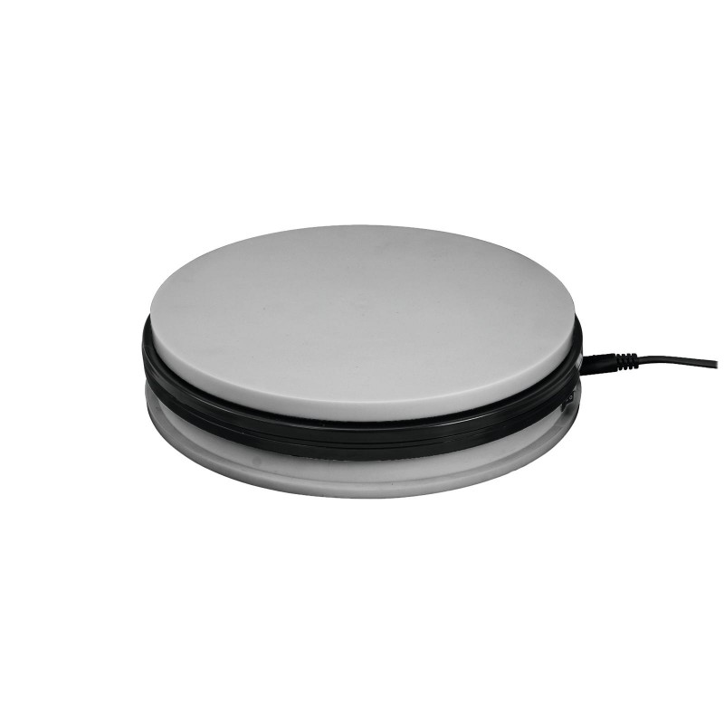 Perfect presentation thanks to rotary plateThe electrical rotary plate by EUROPALMS is ideal to promote your products with style. No matter if it is at a trade fair or in a window display, this rotary plate makes any product a real eye-catcher.Small power packageThe high-performance motor has been developed for permanent use and can move products with a weight between 5 and 50 kg, depending on the model. The rotary plate is delivered ready to use. It is equipped with a Euro power cord and is available in 3 different sizes:- 15 cm diameter - 5 kg maximum load with 2.4 rpm- 25 cm diameter - 25 kg maximum load with 1 rpm- 45 cm diameter - 50 kg maximum load with 0.5 rpmAvailable in different colorsThe housing impresses with its elegant design and is available in the colors silver, black and white. The choice is up to you!