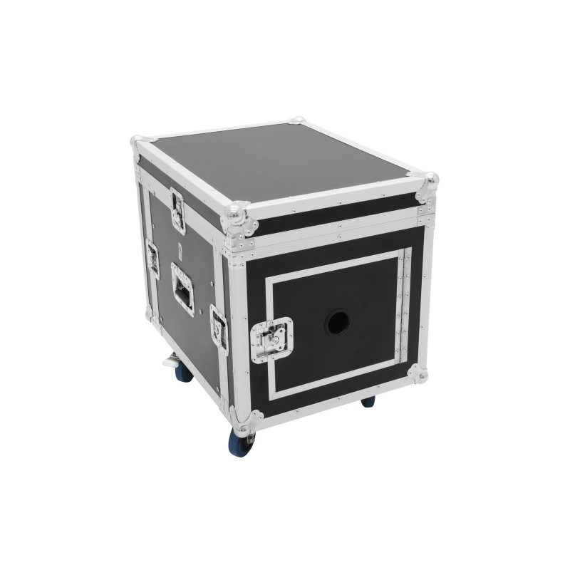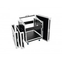 Professional solution for a complete DJ setput: this heavy-duty case accommodates your PA, a double CD player, a 19" mixer, effect units, and further 19" units