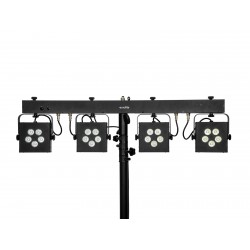 Bar with 4 powerful RGB/WW spots, QuickDMX support, IR remote control and bag