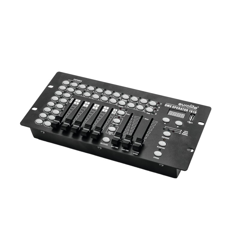 Compact console for 16 lighting effect units with up to 10 DMX channels and USB