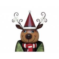 The life-size metal figures are the absolute eye-catcher of your winter and Christmas decorations. They have been lovingly handcrafted and each piece is unique. The high-quality workmanship is particularly evident in the elaborate details of each individual figure.With hat, warm coat, knitted scarf and umbrella the reindeer "Rudy" is well prepared for the cold season. He also holds a lovingly packaged gift in his hand. He welcomes your visitors with a friendly smile or supports the product presentation of your shop in the pre-Christmas season.The reindeer can be assembled in just a few simple steps. A stable metal arch, which connects the two shoe soles from behind, additionally ensures a stable stand and can also be used for further fastening.