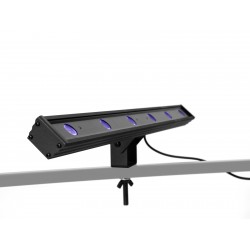 The Antari DarkFX Strip 510 is an efficient high-output and low-power consumption UV LED bar that delivers a peak wavelength of 365nm and radiant flux output of 4500 mW at full intensity with minimum visible light. This ensures all UV-reactive materials reflect perfectly with stunningly bright and vivid colors. Equipped with 6 x 1.9 W high-power UV LEDs, it features a 25° narrow beam angle, flicker-free operation, and special optics to prevent wear degradation from high UV exposure. This IP20-rated LED bar comes with an aluminium housing with an adjustable bracket for versatile mounting options.The Antari DarkFX Drive 4 or Drive 4 MKII fixture driver (sold separately) is required for power and DMX control.