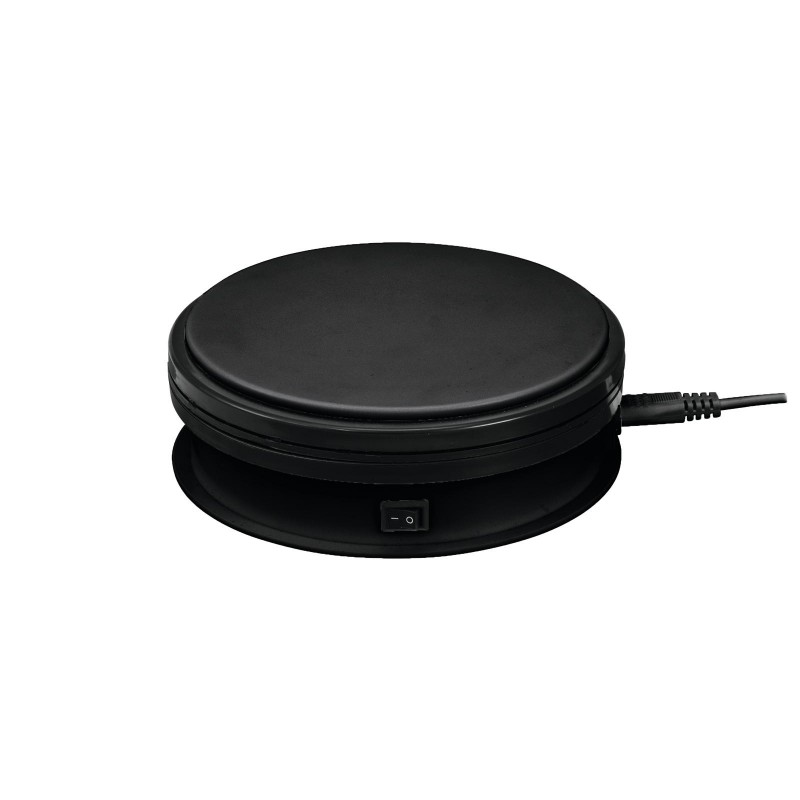 Perfect presentation thanks to rotary plateThe electrical rotary plate by EUROPALMS is ideal to promote your products with style. No matter if it is at a trade fair or in a window display, this rotary plate makes any product a real eye-catcher.Small power packageThe high-performance motor has been developed for permanent use and can move products with a weight between 5 and 50 kg, depending on the model. The rotary plate is delivered ready to use. It is equipped with a Euro power cord and is available in 3 different sizes:- 15 cm diameter - 5 kg maximum load with 2.4 rpm- 25 cm diameter - 25 kg maximum load with 1 rpm- 45 cm diameter - 50 kg maximum load with 0.5 rpmAvailable in different colorsThe housing impresses with its elegant design and is available in the colors silver, black and white. The choice is up to you!