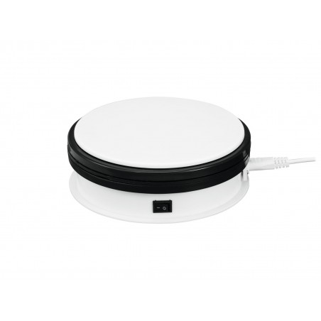 Perfect presentation thanks to rotary plateThe electrical rotary plate by EUROPALMS is ideal to promote your products with style. No matter if it is at a trade fair or in a window display, this rotary plate makes any product a real eye-catcher.Small power packageThe high-performance motor has been developed for permanent use and can move products with a weight between 5 and 50 kg, depending on the model. The rotary plate is delivered ready to use. It is equipped with a Euro power cord and is available in 3 different sizes:- 15 cm diameter - 5 kg maximum load with 2.4 rpm- 25 cm diameter - 25 kg maximum load with 1 rpm- 45 cm diameter - 50 kg maximum load with 0.5 rpmAvailable in different colorsThe housing impresses with its elegant design and is available in the colors silver, black and white. The choice is up to you!