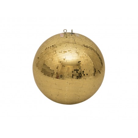 No party without a disco ball! Its simple design and affordable price make the disco ball a popular decoration classic used to create fascinating plays of light on the dance floor. Eurolite offers a wide range of disco balls in different colors and sizes.This model in professional quality has a diameter of 50 cm and is covered with countless small gold-colored mirrors (10 x 10 mm). The robust plastic core is covered with hundreds of small mirror facets and features a continuous shaft guaranteeing a high tensile strength. The mirror ball also includes two eyelets allowing for attaching both the fastening chain and the required fall protection. An additional motor can be used optionally to make the mirror ball rotate automatically. Suitable motors, the required mounting material and a transport case are available as accessories.