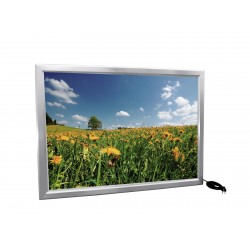 Turn the lights on!Let your posters shine. We can tell you how! Just take a look at our illuminated billboard. With very little effort your posters can be fixed or changed. Simply open the frame, put the poster under the transparent acryl glass panel and shut the frame again. Lights on! Done! The folding frame represents a classic outdoor advertising. But combined with the additional illumination and the precious brushed aluminum frame your posters perfectly come into its own: a perfect presentation in A0 meters. Thanks to the acryl glass panel the important sheets are protected from any impurities and from fading. The frame can easily be mounted to a wall, both upright and horizontal. And as manufacturing is first class, the clips will always close properly, although they have been used numerously. Our illuminated billboard is also available in 1 x 2 m, DIN A3, A2 and A1.
