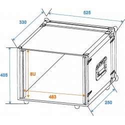 Flightcase for 483 mm unitsThe ROADINGER effect rack CO DD with 8 U and built-in rack rails is ideal for transporting your 483 mm control and effect units. The two removable lids (double door version) allow you to access your equipment quickly and easily. The high-quality workmanship with 7 mm wall thickness as well as the aluminium profile frame with rounded corners and three-legged, medium-sized steel ball corners ensure stability. The flight case also has eight snap locks with eyelets for locking and two chrome-plated case folding handles. The four large, steel-reinforced rubber feet provide the necessary standing security. The case can be loaded with a maximum of 25 kg.