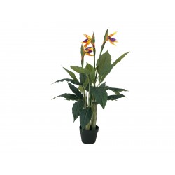 Originally native to South Africa and the Canary Islands, the plant owes its names to the exotic appearance of its flowers - birds of paradise.As a decorative element for your living rooms or offices, it also meets the highest demands. The large, leathery leaves resemble those of the banana plant and are made of high-quality tarpaulin with the typical leaf embossing. Three open flowers in bright colours complete the impressive appearance of the 90 cm high plant.The flower comes in a basic gardener's pot, which gives the plant a stable stand when placed in a planter.Optionally, we recommend treating the flower at regular intervals with a UV protection spray so that you can enjoy your artificial plant for a long time.