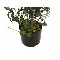 The approx. 104 cm high, evergreen olive bush from Europalms adds a Mediterranean flair even to simply furnished office and living rooms. It already falls into shape by itself when set up and thus saves you time.Real olive trees belong to the olive family. They have been cultivated for many centuries and are among the oldest known crops.During the production of this artificial plant, a lot of attention was paid to lifelike details. This can be seen especially well in the typical leaf design with silver shimmering underside and olives that indicate the different degree of ripeness of the fruits in different shades of color.As a cover of the included basic gardener pot, there are incorporated pebbles and artificial moss. Thus, the pot can serve as a stand for a planter, as well as be used as a decorative pot.