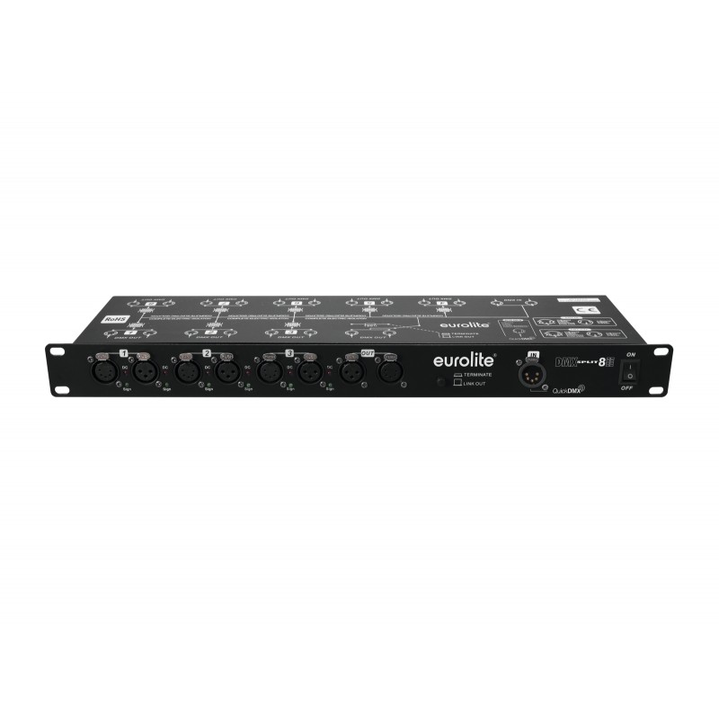 Splitter with 8 galvanized isolated outputs, 3/5-pin & QuickDMX XLR sockets