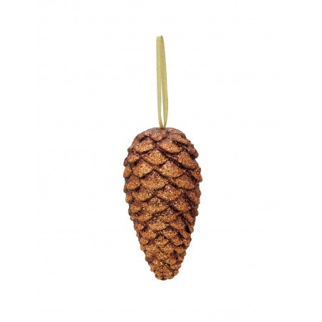 Glittering fir tree cone ornament with golden sling