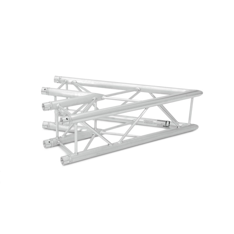 QUADLOCK 6082 4-point truss systemQUADLOCK 6082 is a 4-point truss system made of aluminum. The individual elements are connected via four cones, pivots and pins. QUADLOCK 6082 is made of EN-AW 6082 T6 (AlMgSi1 T6) alloy for even higher loads.The advantage of the conical connection system is that the cones completely fit into the main chords so that highest load capacity is guaranteed. The Quick-Lock system enables fast, efficient and highly aesthetic assembly when the truss constructions are frequently assembled and dismantled.The four main chords are made of 50 mm aluminum tube with 2 mm wall thickness and offer a good relation between strength and weight. The braces have a diameter of 16 mm with 2 mm wall thickness and leave enough space for installing couplers, hooks and clamps.With 290 mm outer dimensions, QUADLOCK QQTR is a stable truss system for higher loads and extended durability. This system is mainly designed for intense use in stage installations, fair installations, event installations but also for permanent installations in discotheques and theatres.Its polished surface makes this universal system a real eyecatcher. Due to its wide range of standard system lengths, corners and accessory, this system is highly versatile and offers unlimited design possibilities.The production of this truss system is TUV-monitored. The load table as calculation base can be downloaded from the Internet before buying the product!Please note: this truss system must never be combined with other systems!