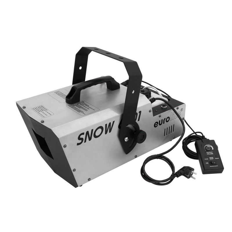 The strong motor of this snow machine enables a quick snowing and a foam/snow build up with a very dense snow cover. At the same time the flocks are thrown into the room. The snow machine is delivered with a bracket for suspended mounting. Perfect for theaters and discotheques, which need snow for their decoration. A permanent operation can be guaranteed by the big tank. And when the snow storm is over, the dissolution happens nearly without residues.