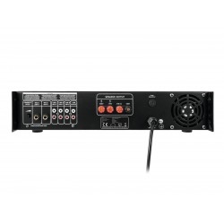 | Connections: | Input: 2 x Microphone via 6.3 mm plug (unbal.) Input: 1 x Microphone via 3-pin XLR/6.35mm jack (F) combination socket (mounting version) Input: 3 x line via stereo RCA 0.3 V Output: 1 x line via stereo RCA 0.3 V Output: speakers via screw terminal |