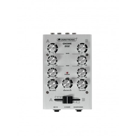 | Chanals: | Input chanel: 2 x stereo via RCA, channel control via Rotary knob, 2-band tone control EQ Input chanel: 1 x mono via Plug 6,3mm/3,5mm (Jack), channel control via Rotary knob Master output: 1 x stereo via RCA, channel control via Rotary knob |