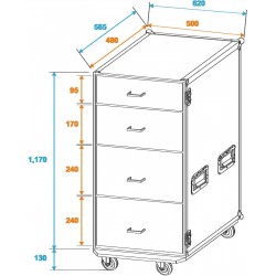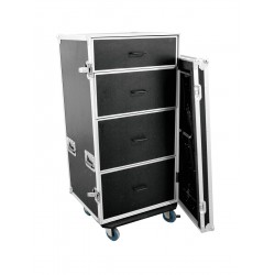 Flightcase with integrated desk and 4 drawers (2 x 7.5 U, 1 x 6 U, 1 x 4 U)