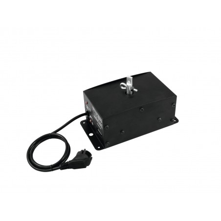 This solid mirror ball motor can carry a load of up to 10 kg. This equals a mirror ball of approximately 50 cm, 12-fold safety margin included. The motor has an adjustable speed. This creates either peaceful or more rapid effects.To make the most of these effects, you can add a pin spot to illuminate the mirror ball. The rotating direction and speed can be controlled via the DIP switches or any commercial DMX controller. For bigger light installations, a master-slave operation with multiple devices working in sync is also possible, no external control required.The motor is equipped with a patented mechanical drop protection against unintentional loosening of the axis as well as the required second eyelet for the attachment of the safety chain.All Eurolite safety motors comply with the safety norm DIN EN ISO 12100 and relevant accident prevention regulations. Each production charge is subject to strict quality control which makes the motor suitable for discotheques and other public events. The MD-2030 is delivered ready to use with safety plug and power cord.