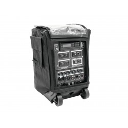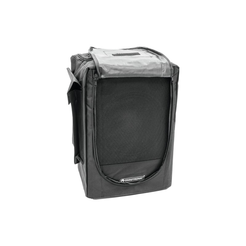 Protective bag fort he MOM-10BT4 modular PA systemThe protective bag for the modular PA system MOM-10BT4 by OMNITRONIC is made of durable black synthetic fabric.Because of the front side made of sound-permeable mesh fabric, the box can remain in the protective bag during operation.The speaker bag also has an opening for the transport handle and storage compartments for your accessories, such as microphones and cables.
