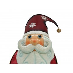 Handcrafted Santa Claus figure made of metal, painted with colors, with gift and bell