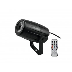 The LED PST-5 QCL Spot by Eurolite offers sharp and atmospheric RGBW beams and is suitable for illuminating mirror balls and decorating window displays, trade fairs and more!One 5-watt 4in1 LED with RGBW color mixture produces thrilling color mixtures, dimmed light as well as dynamic strobe effects - easily controllable in automatic or sound control mode via the integrated microphone. Thanks to the memory function, it is also not necessary to reconfigure the fixture for each use: It automatically plays the most recently used program.The fixture is to be operated via the supplied IR-7 remote control. The adjustable bracket makes for a quick and easy mounting to a wall or ceiling.