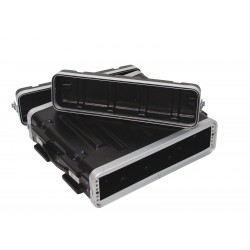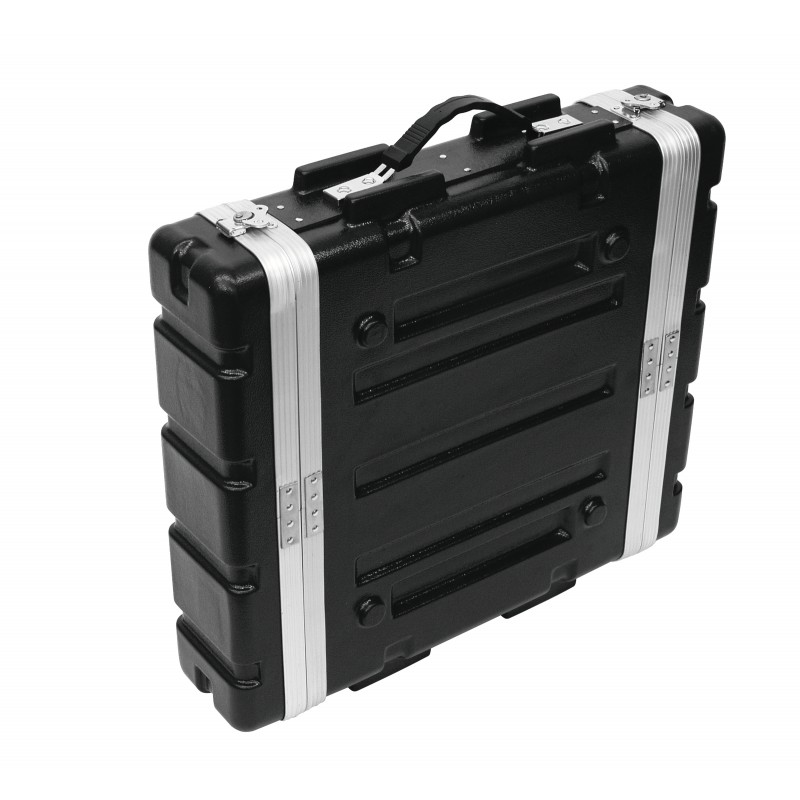 Plastic flight case for 19" devicesThe stable and light ROADINGER hard shell flight case KR-19 is suitable for all 19" control and effect devices and is available in different height units. It is also scratch and impact resistant.The aluminium profile frame provides the necessary stability. The flightcase is supplied with two mini butterfly locks, built-in rack rails, two slide rails and two aluminium carrying handles. In addition, you can remove the two tops of the flightcase (double door version).The maximum load is 10 kg.