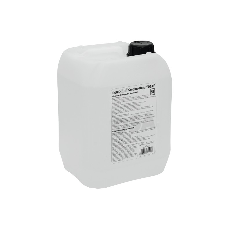 Eurolite smoke fluid - Made in GermanyTrust is good, control is of course better - therefore we test our smoke fluids according to valid norms to meet the legal requirements, for example the REACH act. There have to be reasons why a product has enjoyed public confidence for more than two decades. There have to be reasons why in 20 years we have sold more than a million units of smoke fluid.Quality and reliability are the decisive components for success. Our customers know they get an absolute high class product with Eurolite fluids. To be high class, a product has to do more than just function - it must guarantee not to be harmful to health. This may sound a bit too dramatic, but the truth is: unclean liquids can gravely affect the respiratory system. Moreover, easily inflammable liquids can cause serious damages. Many providers do not care about these dangers. At Steinigke however, we test our fluids stringently. And in addition, we let independent bodies continuously check the liquids.Therefore we can guarantee that our fluids are -water-based-odorless-Glycerine-free-non-toxic-not harmful to health-readily biodegradable-non-inflammable.Everyone using our smoke fluids places his trust in us. We pay it back with rigid controls of these liquids and both sides win.Smoke that quickly vanishes into thin air!Using fog on stages, in studios or on exhibitions, surely creates great effects. It may yet happen, that the smoke will not disintegrate but last and thus becomes annoying in the end. At this point it is the new DSA-fluid that is brought to the scene. In contrast to the common standard, the fog is very short-lived and by that can be used more precisely and trenchantly. A perfect alternative to the persistant wafts of mist. Sometimes less is more!