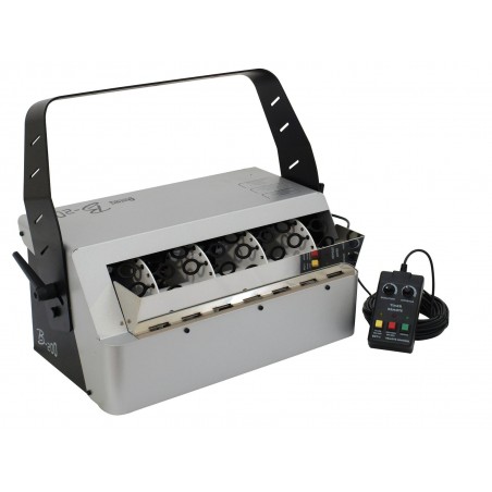 To say the B-200 is a high output bubble machine is too modest. It features four "double bubble wheels" which generate a massive, continuous torrent of bubbles. The set of three fans at the back of the unit spread the bubbles far and wide. Designed with lighting designers, large clubs and theatrical productions in mind, this bubble machine has DMX on-board. This provides for central control on B-200's bubble generation. The machine can also operate with/without optional timer and wireless remote controls. With its large fluid reservoir, the B-200 will pack the venue with bubbles as long as the party lasts.