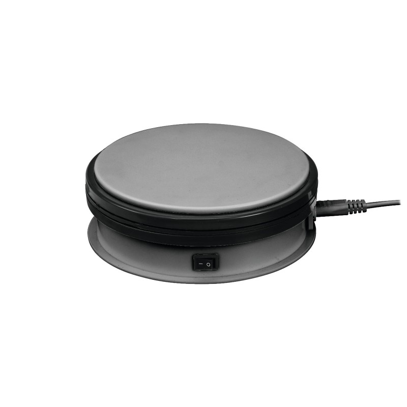 Perfect presentation thanks to rotary plateThe electrical rotary plate by EUROPALMS is ideal to promote your products with style. No matter if it is at a trade fair or in a window display, this rotary plate makes any product a real eye-catcher.Small power packageThe high-performance motor has been developed for permanent use and can move products with a weight between 5 and 50 kg, depending on the model. The rotary plate is delivered ready to use. It is equipped with a Euro power cord and is available in 3 different sizes:- 15 cm diameter - 5 kg maximum load with 2.4 rpm- 25 cm diameter - 25 kg maximum load with 1 rpm- 45 cm diameter - 50 kg maximum load with 0.5 rpmAvailable in different colorsThe housing impresses with its elegant design and is available in the colors silver, black and white. The choice is up to you!
