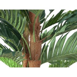 Whether for your residential or business area, the 3-trunk Kentia palm from Europalms is ideal as an easy-care decorative element. Your trunks are wrapped with real palm fibre material, which additionally gives the artificial palm a very natural appearance. They show off particularly well, since the palm fronds were set only in the upper range. The palm leaves are made of high-quality textile material. We recommend to treat these optionally in regular intervals with a UV-protection spray, so that you can enjoy your palm for a long time.The plant is available in different sizes.Included in the delivery is a basic gardener's pot, which gives the plant a stable stand when placed in a planter. The leaves only need to be bent slightly into shape.