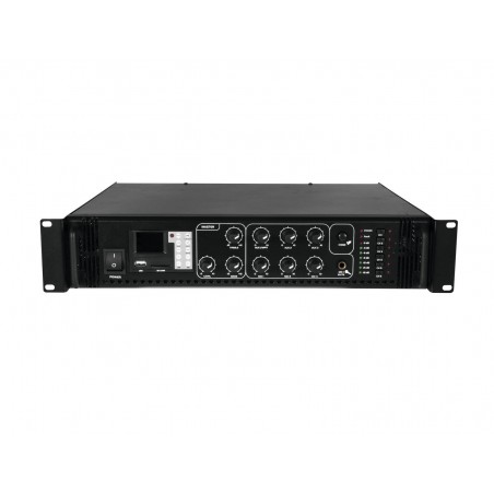 Enormous reliability with a maximum of flexibility The Omnitronic MPZ-500.6P ELA mixer amplifier is your reliable partner for ELA sound reinforcement systems. Thanks to its 19" format, it is ideally suited for both mobile and permanent installations. Outputs for ELA loudspeakers with 70 V and 100 V audio transformers or 4-16- Ohm loudspeakers leave nothing to be desired. In addition, you can also connect a device with line level (e.g. mixing console) to the line output. With 6 mixable inputs you are always flexible. Connect up to 3 microphones and 3 line level devices. Control your ELA speakers conveniently via the 6 zone outputs of the MPZ-500.6P. They can be switched separately on the front panel. For you, this means the greatest possible adaptability when implementing your sound reinforcement concept.The MPZ-500.6P also offers you an MP3 player with infrared remote control and blue backlit LCD display. It has both an SD card slot and a USB port. So you can spontaneously and flexibly play music titles from a storage medium of your choice.Make yourself heard! The microphone input at the front has an adjustable priority switch. It allows you to make important announcements with automatic, continuously adjustable level reduction of all signals. You can also use the gong to draw attention to your announcement. Protective functionsA fan protects the interior of your MPZ-500.6P from overheating. In addition to a switch-on delay, it has protection circuits against overvoltage and short-circuits. In these cases, your loudspeakers are electrically isolated from the amplifier. This protects both the MPZ-500.6P and your speakers from damage.