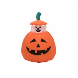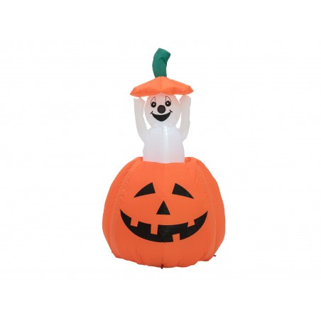 With this giant pumpkin you score especially with the "little ones", because a Halloween decoration doesn't always have to be scary.Already by the size of 1,2 meters alone the gigantic pumpkin by Europalms is a real eye-catcher.A special effect is that the lid lifts periodically, a whimsical, white ghost appears and disappears again.Even in the dark he doesn't loose its charm, because the white spirit is illuminated by white LEDs.The protection class IP44 - splash-proof - also allows outdoor installation in sheltered areas.It is that simple: For operation, permanently connect the pumpkin to the power supply with a 1.70 m long supply cable. Then he blows up to his full size on his own. A second blower is switched on, causing the lid to lift and the mind to appear. The stable stand is ensured with additionally included 4 ground spikes. After the season, just deflate the pumpkin and then fold it up again to save space and wait for its next SCARY appearance.