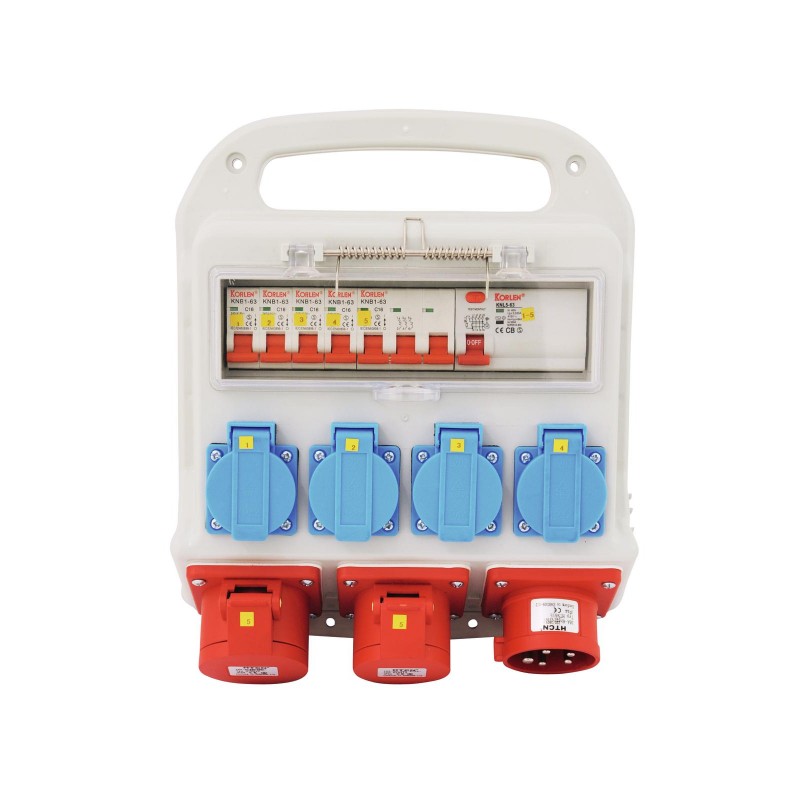 | Protection: | 1 x fault-current circuit breaker (FI) 40A/0.03A 4-pol 1 x circuit breaker C 16A 3-pol 4 x circuit breaker C 16A 1-pol |