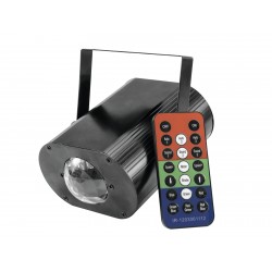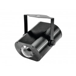This compact LED spot by Eurolite brings RGB colors in every window display, party room or trade fair! Light up the room in any color you like to impress your audience.The H2O Water Effect is operated via the supplied remote control which is not bigger than a credit card and fits even in the smallest pocket. You can adjust e.g. the flash rate of the stroboscope and the rotation speed of the integrated effect wheel.For a permanent installation you can simply use the pre-punched hole on the bracket of the fixture. As the spot is delivered ready to use, all you have to do is install it and switch it on - plug and power cord are included. Once you plugged in the H2O, you can use preset programs like slowly fading colors, rapid color changes, strobe effects or constant light in a single color. These programs are available in sound-controlled mode (via the integrated microphone) or automatic mode. It is entirely up to you to make the most of your event!